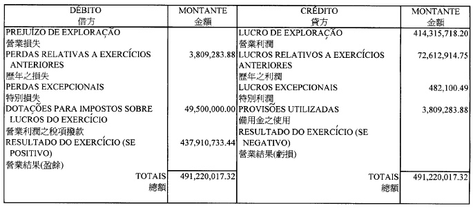 Resultado de exercício........................................................................ | $ 437 910 733,44 |