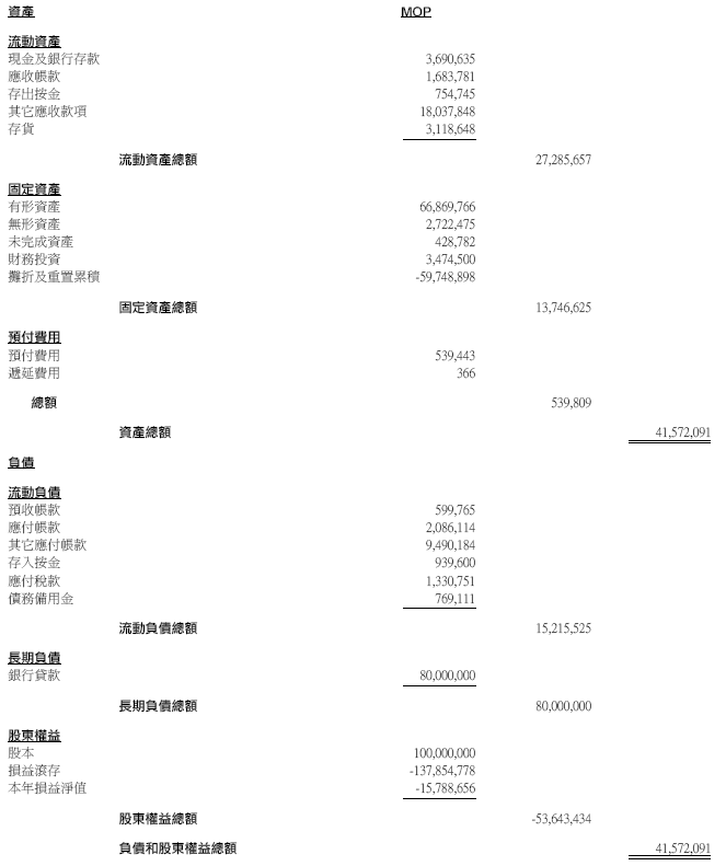 建議將負淨值結餘15,788,656.30澳門元(澳門元一千五百七十八萬八千六百五十六圓三角)轉入承上結餘的帳目內。