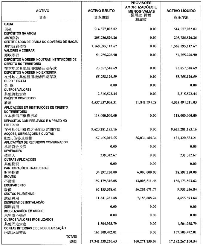 於2005年末的資產淨值為澳門幣一佰七拾一億八千二佰萬,與前年比較上升了19.2%。根據澳門金融管理局頒佈的有關規定計算,本行於去年底的資本充足率為15%。