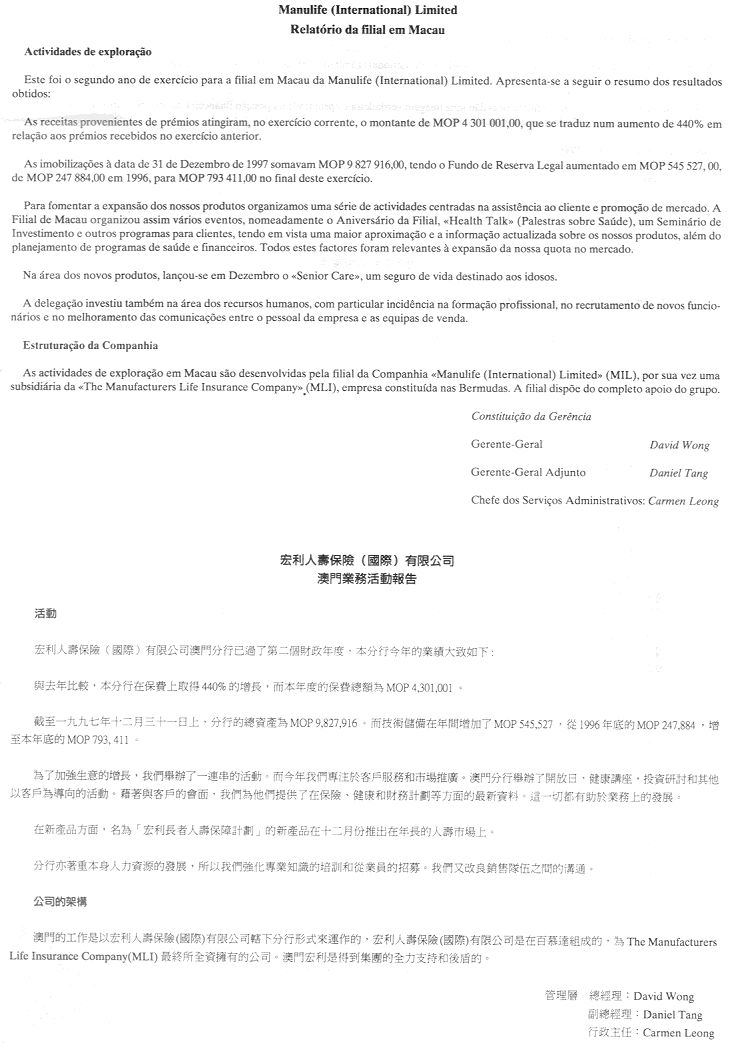 São, desde já, nomeados gerentes os sócios Chan, Kam Wah, Shek, Kwok Hung e Leong Weng Hong, aliás Lui Gi Leong.