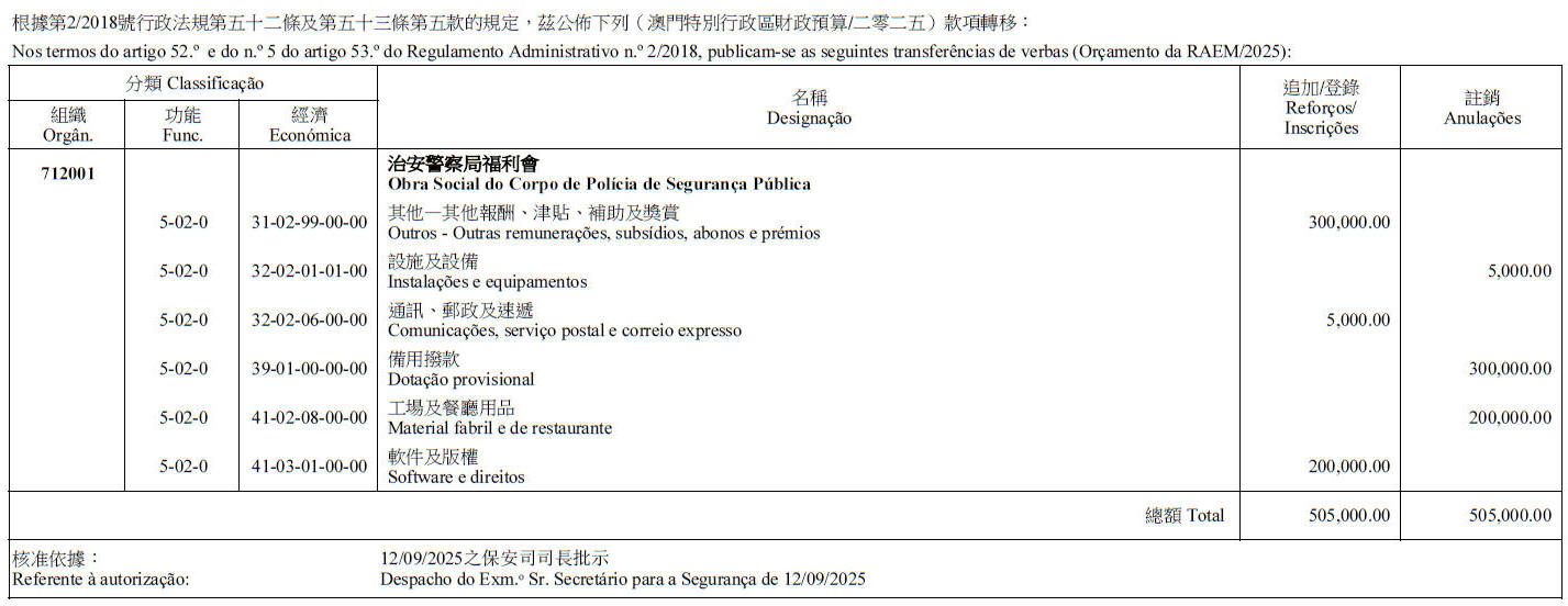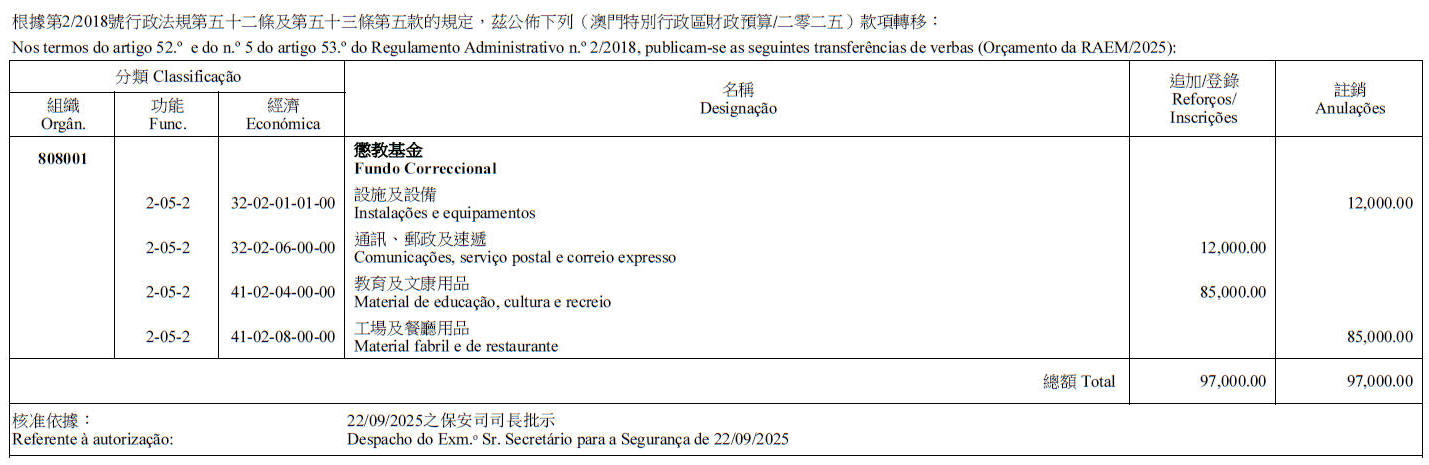 按照行政法務司司長於二零二五年九月十八日作出的批示: