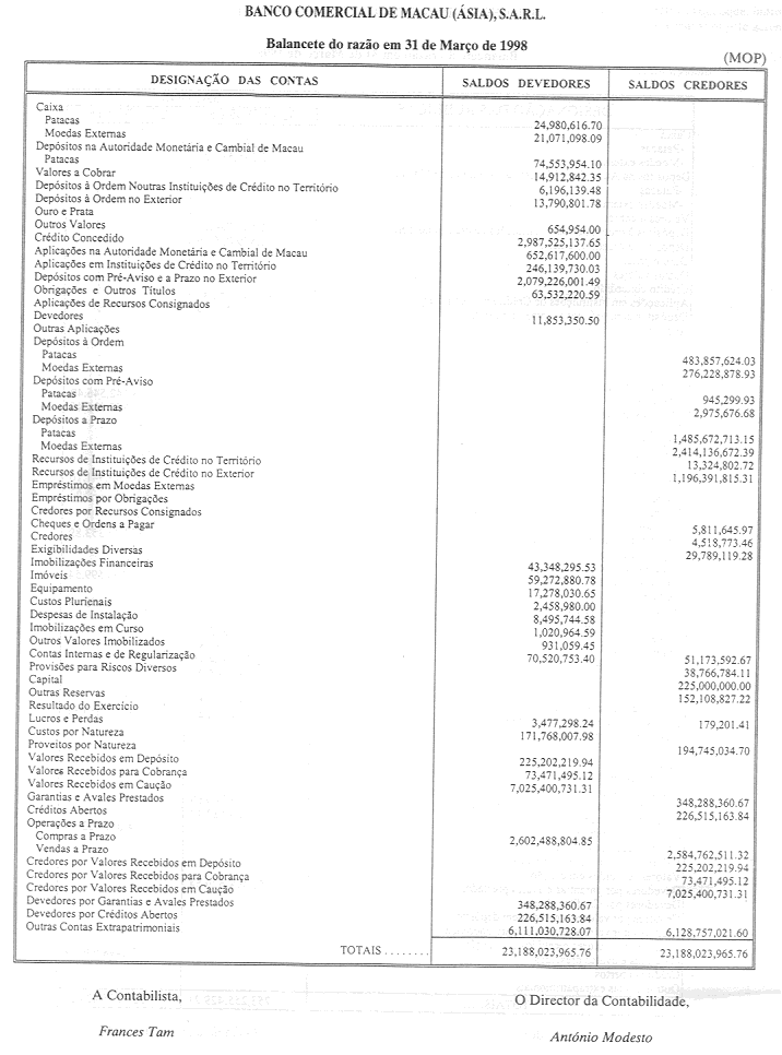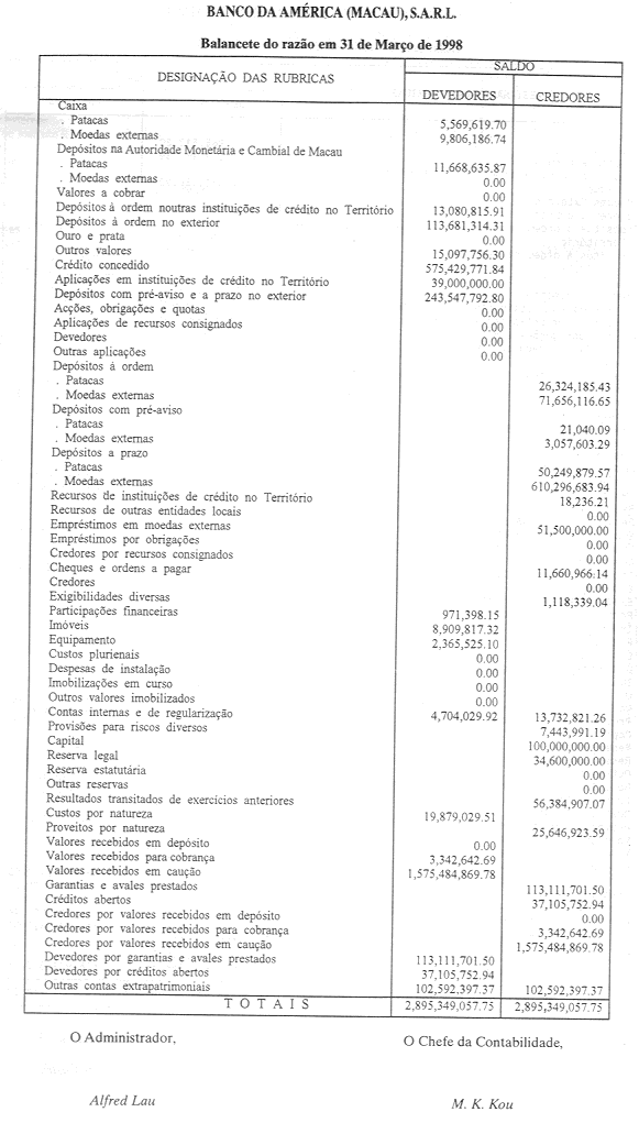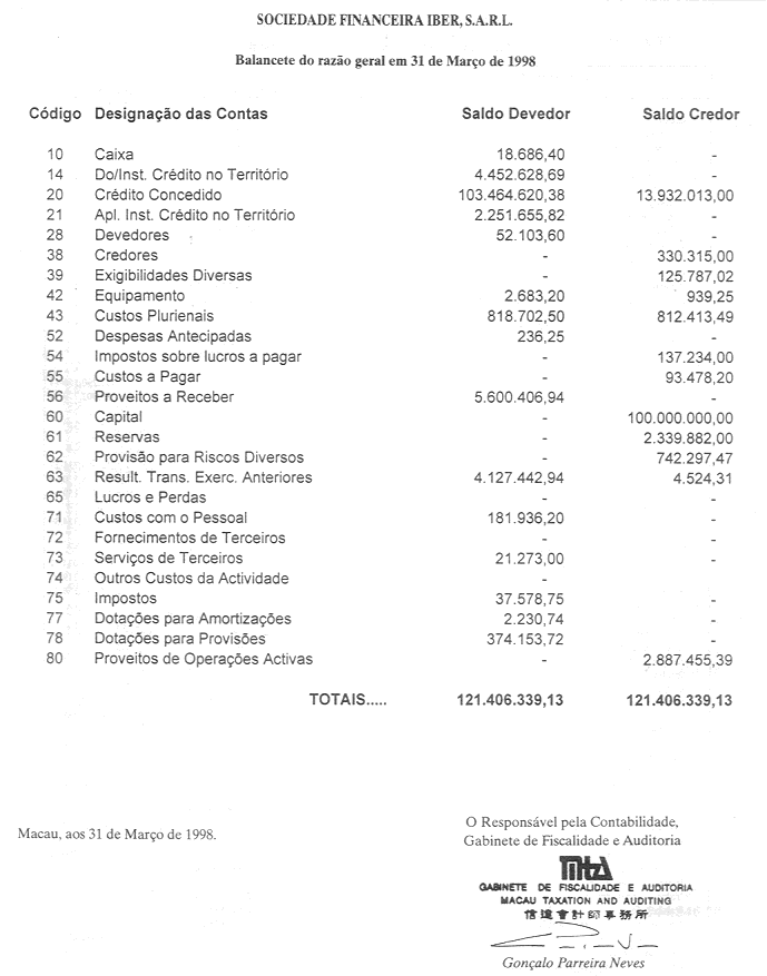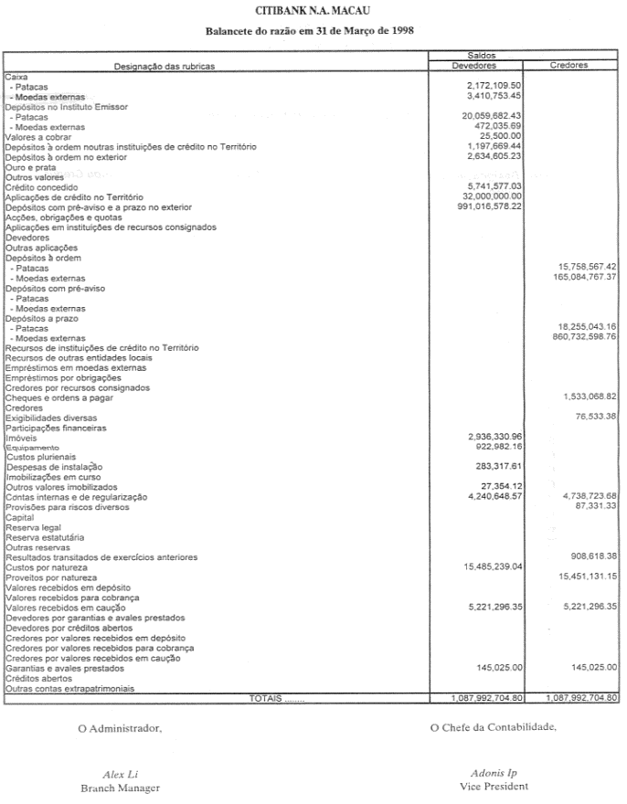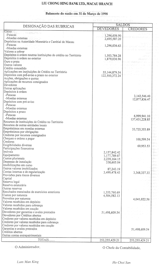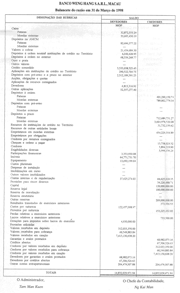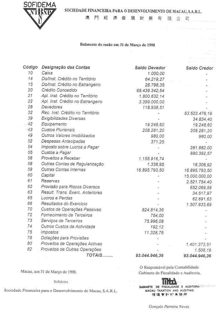 Macau, aos vinte de Abril de mil novecentos e noventa e oito, — Os Sócios, Lei In Kao — Chan Wai Wa.