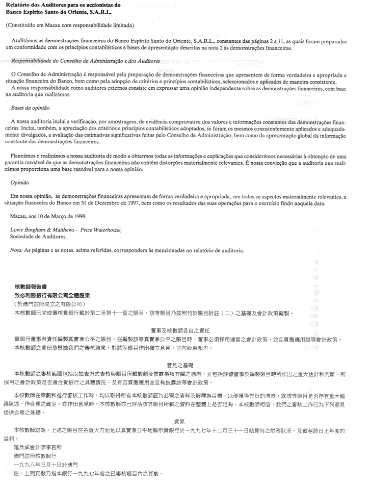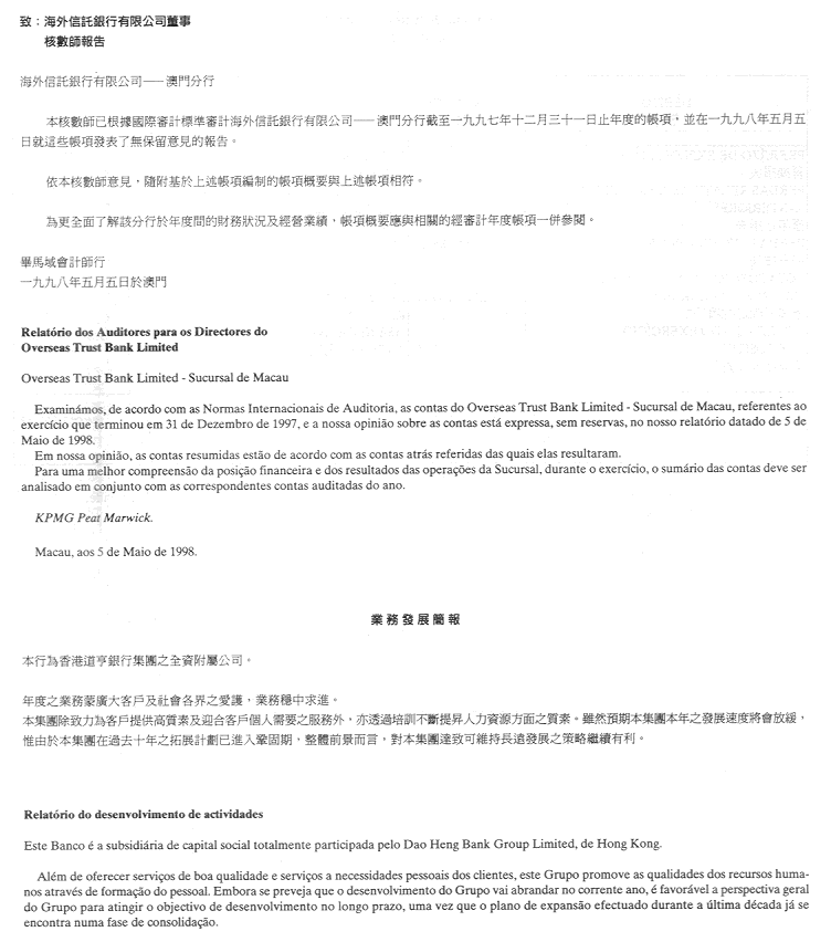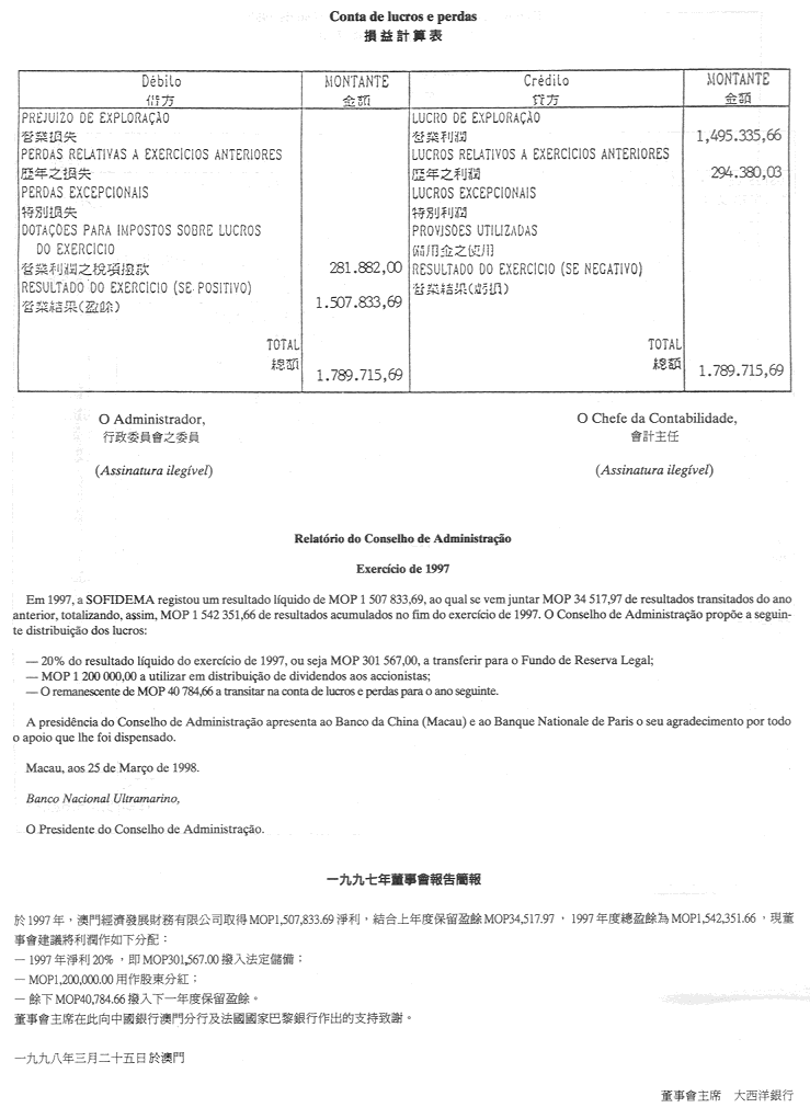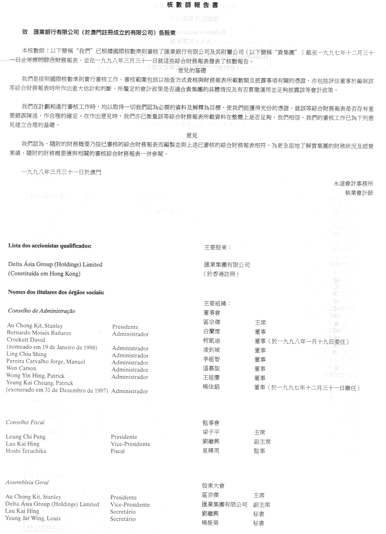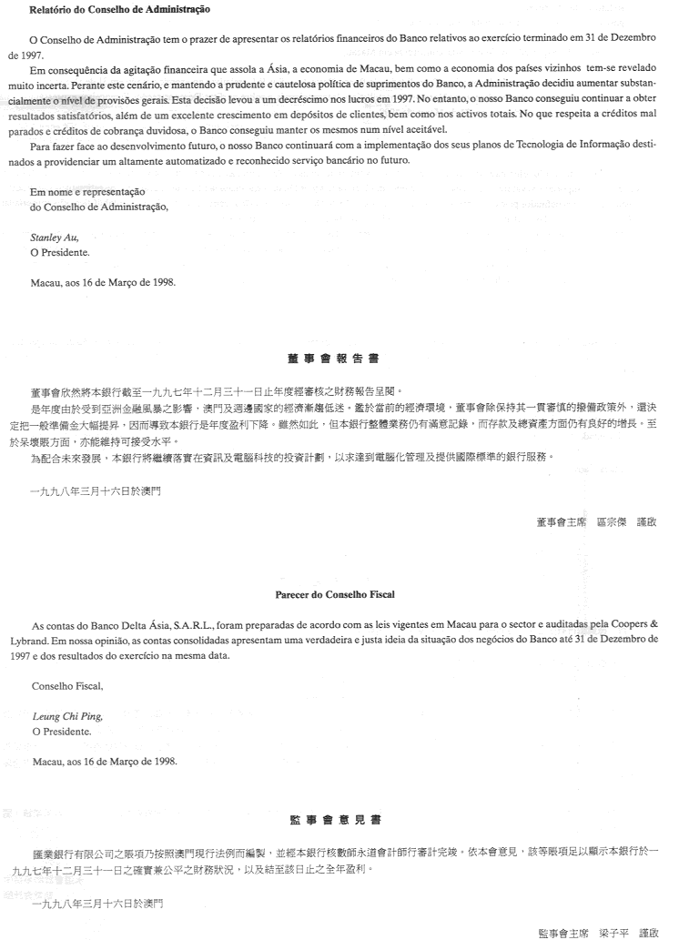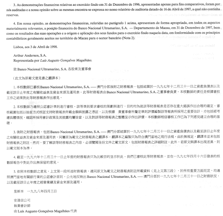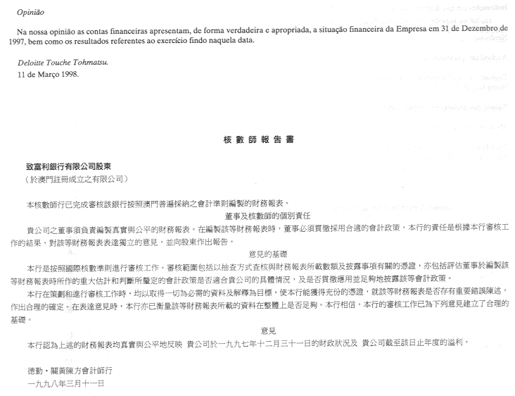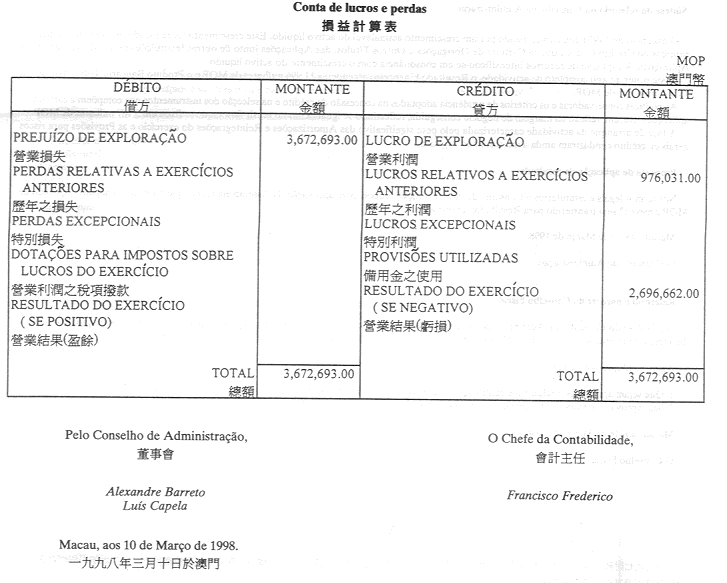 Macau, aos oito de Maio de mil novecentos e noventa e oito. — Os Gerentes, Yang Kai — Zhong Shao Hui.