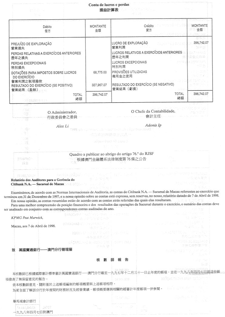 Cartório Privado, em Macau, aos vinte e um de Maio de mil novecentos e noventa e oito. — O Notário, Artur dos Santos Robarts.