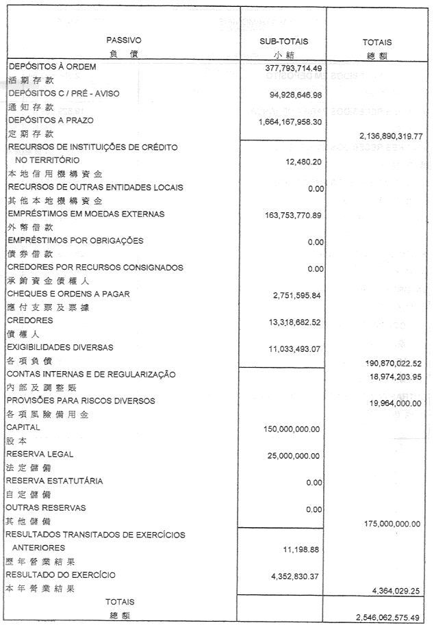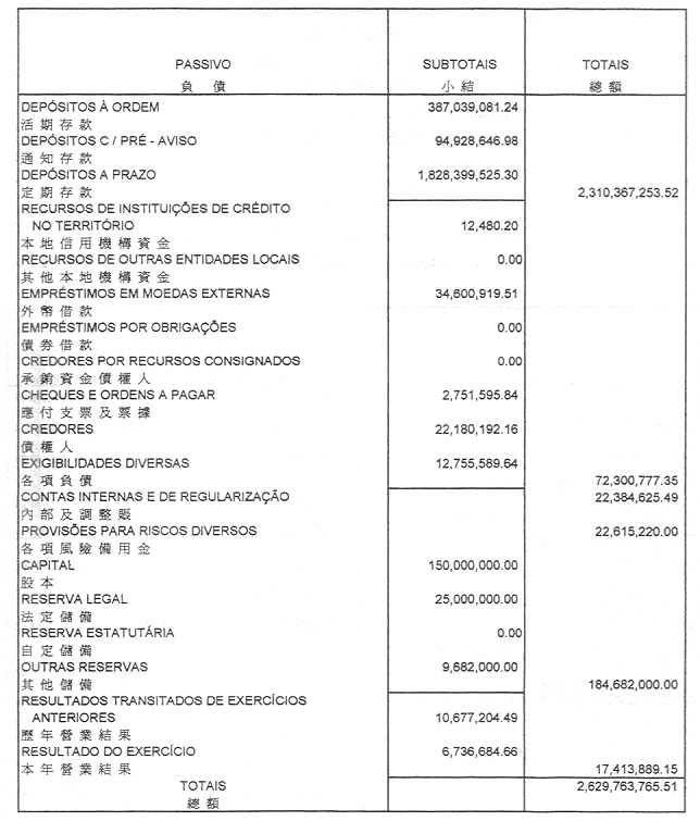 O capital social, integralmente subscrito e realizado em dinheiro, é de cem mil patacas, equivalentes a quinhentos mil escudos, nos termos da lei, e corresponde à soma das quotas dos sócios, assim discriminadas: