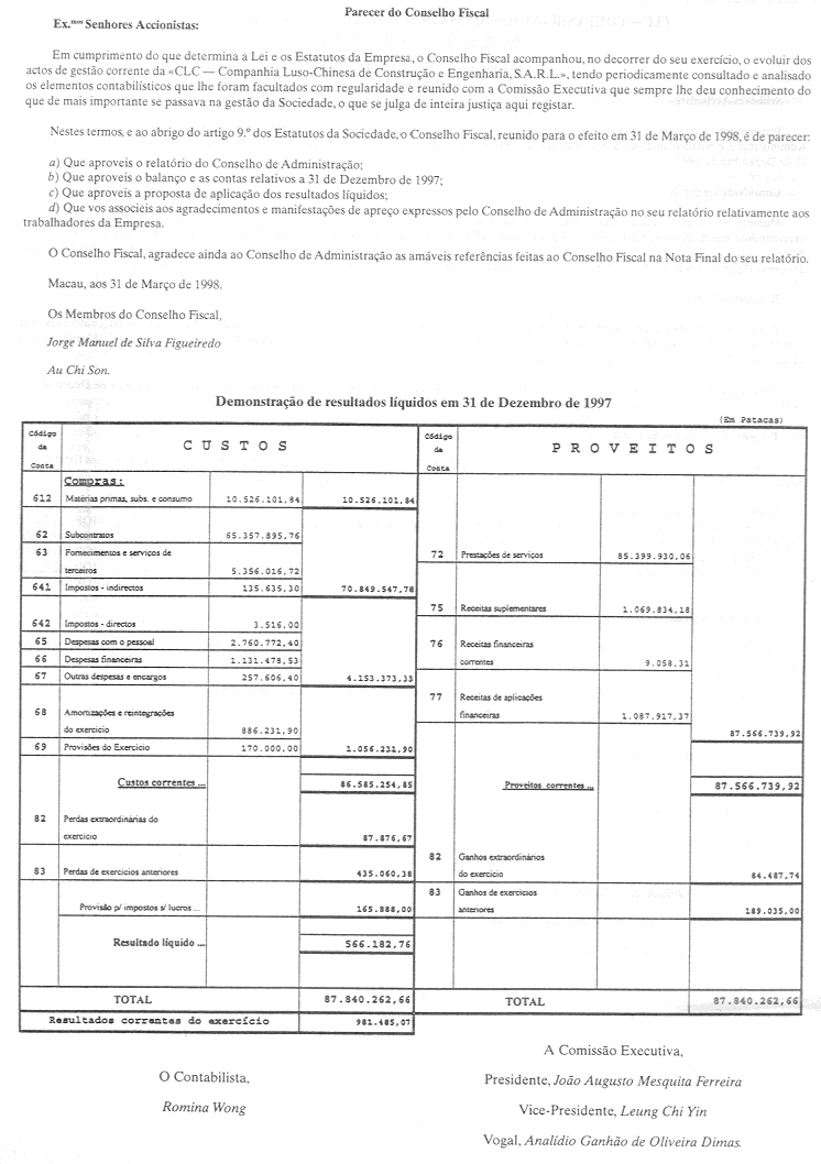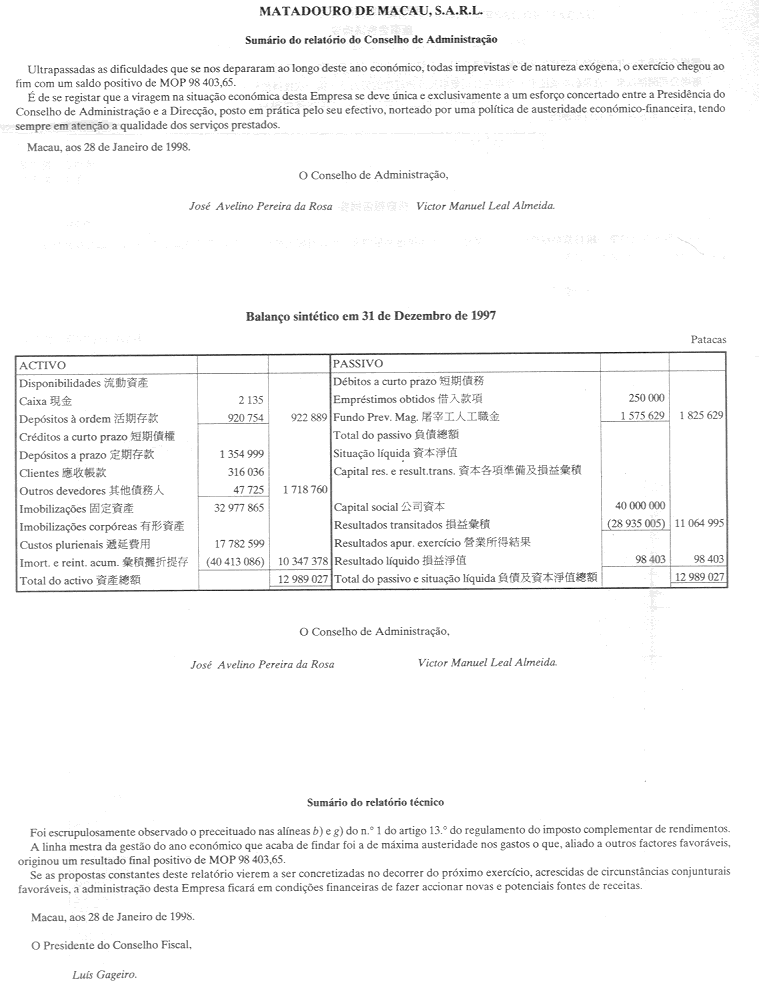 Cartório Privado, em Macau, aos três de Junho de mil novecentos e noventa e oito. — O Notário, José Martins Sequeira e Serpa.