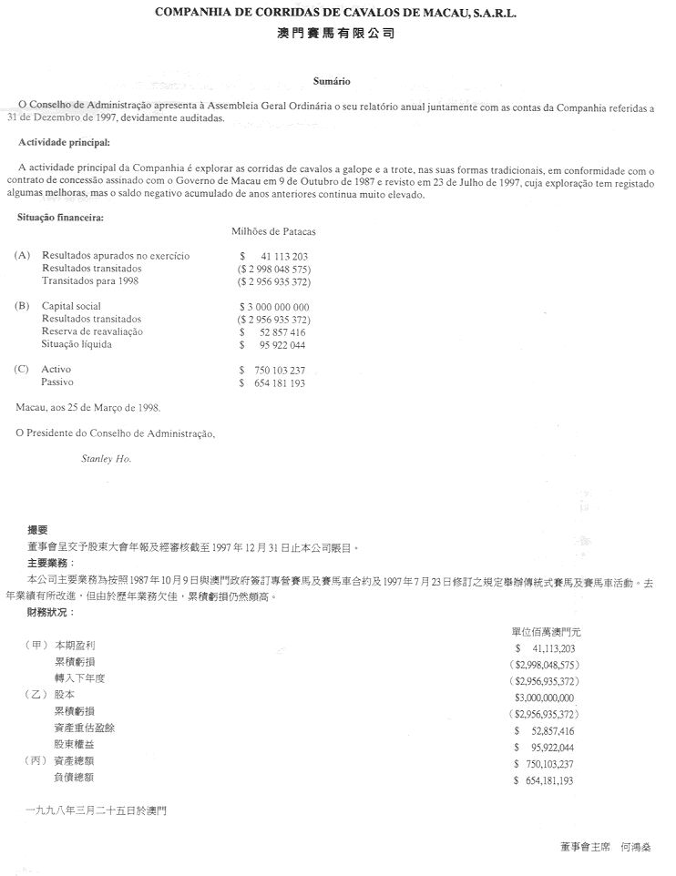 Cartório Privado, em Macau, aos doze de Junho de mil novecentos e noventa e oito. — O Notário, António Passeira.