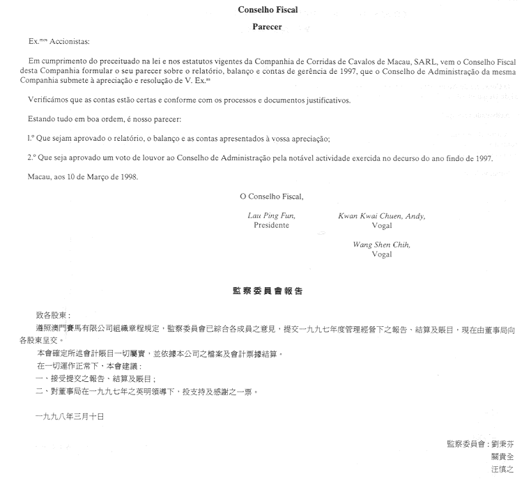 Cartório Privado, em Macau, aos doze de Junho de mil novecentos e noventa e oito. — O Notário, Carlos Duque Simões.