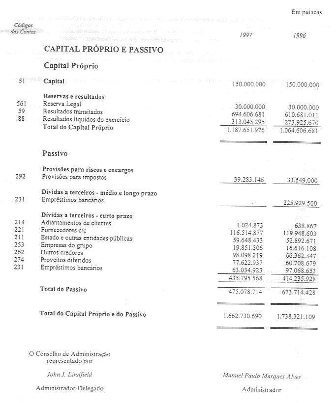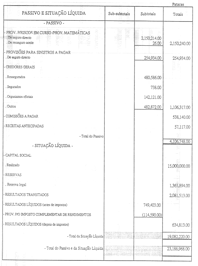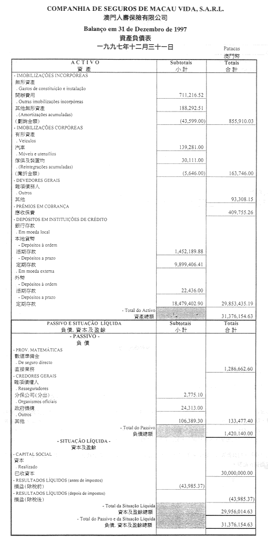 O capital social, integralmente subscrito e realizado em dinheiro, é de trinta mil patacas, equivalentes a cento e cinquenta mil escudos, nos termos da lei, e corresponde à soma das seguintes quotas: