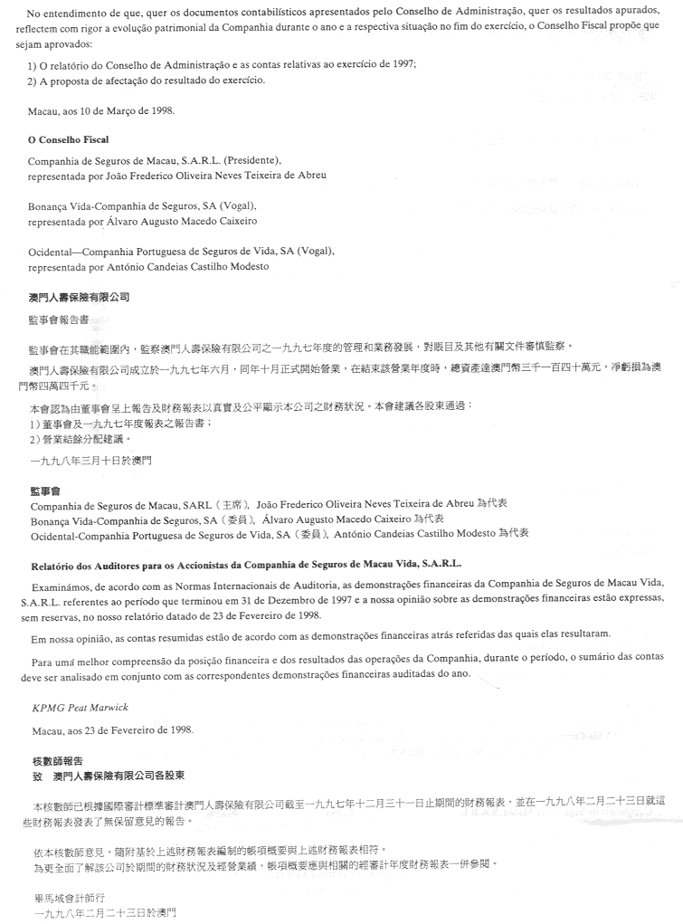Cartório Privado, em Macau, aos quinze de Junho de mil novecentos e noventa e oito. — A Notária, Ana Paula Caldeira.