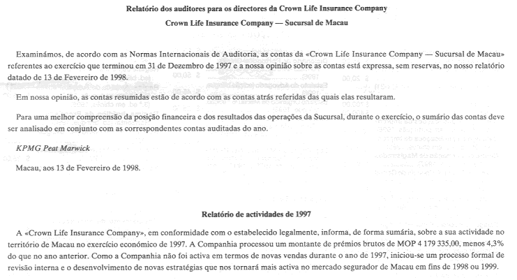 Macau, aos dois de Outubro de mil novecentos e noventa e oito. — Pela Gerente, Efacec, Empresa Fabril de Máquinas Eléctricas, S.A. (Assinatura ilegível).